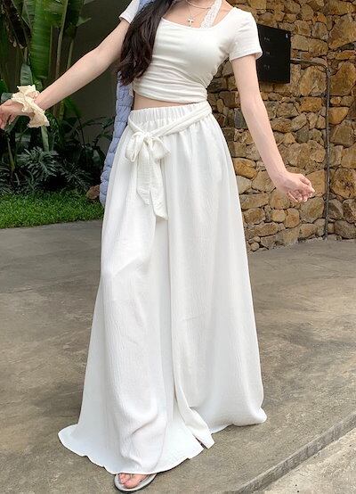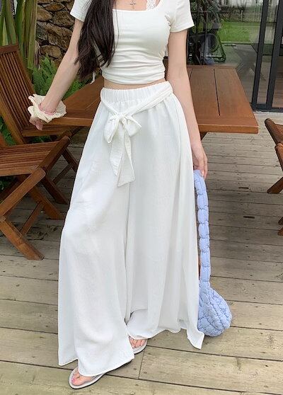 2024春夏パンツ モップパンツ フレア ワイド ハイウエスト 脚長効果 美脚効果 細見え 夏 白 黒 ベージュ カジュアル おしゃれ かわいい 韓国ファッション レディース お出かけ