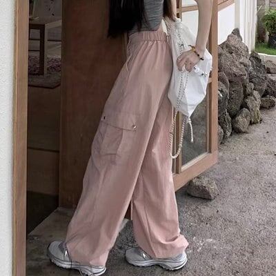 2024春夏パンツ カーゴパンツ ロング丈 ワイド ストレート ハイウエスト 脚長効果 美脚効果 細見え 春 黒 カジュアル 韓国ファッション レディース お出かけ
