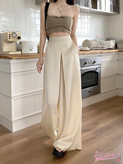 2024 春夏パンツ サテン シルク ワイド ウエストゴム ハイウエスト 脚長効果 美脚効果 細見え ゆったり 春 白 韓国ファッション レディース お出かけ