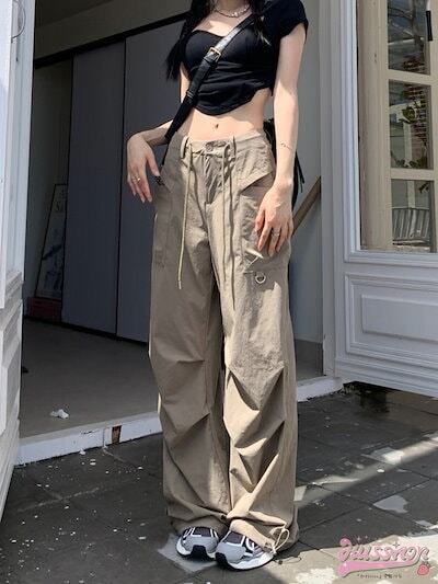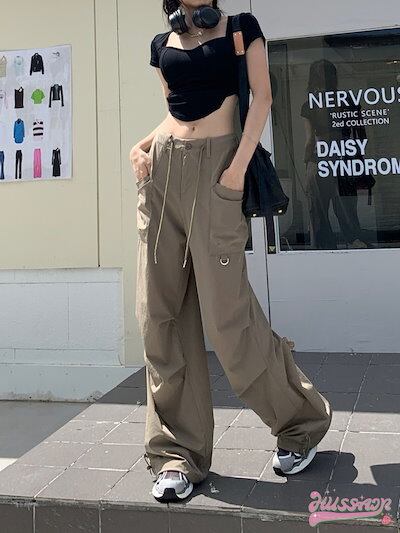2024春夏パンツ カーゴパンツ ワイド ストレート ハイウエスト 脚長効果 美脚効果 細見え 春 茶色 カジュアル 韓国ファッション レディース お出かけ