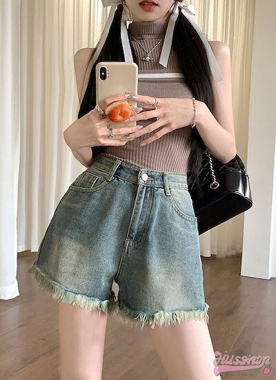 2024 春夏パンツ デニム ジーンズ ショート丈 ハイウエスト 脚長効果 美脚効果 細見え カジュアル かわいい おしゃれ 春 韓国ファッション レディース お出かけ