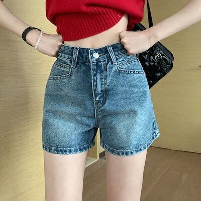 2024 春夏パンツ デニム ジーンズ ショート丈 ハイウエスト 脚長効果 美脚効果 細見え カジュアル かわいい おしゃれ 春 水色 黒 韓国ファッション レディース お出かけ