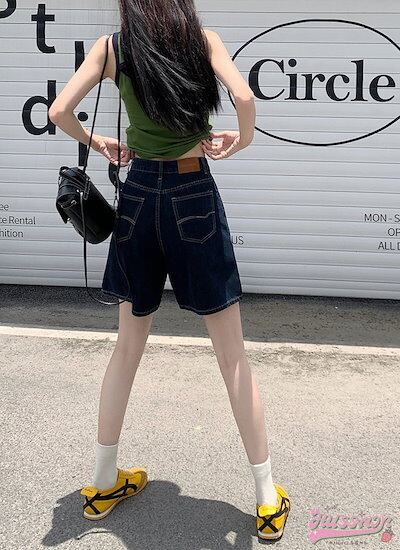 2024 春夏パンツ デニム ジーンズ ハーフパンツ ハイウエスト 脚長効果 美脚効果 細見え カジュアル かわいい おしゃれ 春 韓国ファッション レディース お出かけ