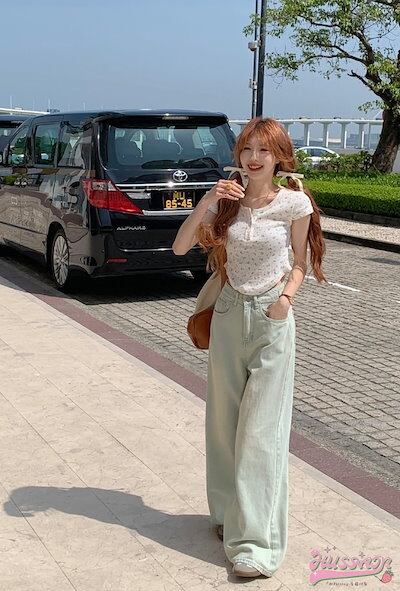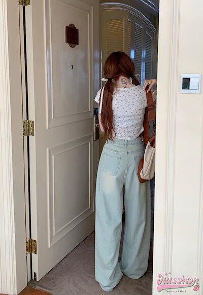 2024春夏パンツ モップパンツ デニム ジーンズ ワイド ストレート ハイウエスト 脚長効果 美脚効果 細見え ウォッシュ加工 春 水色 カジュアル 韓国ファッション レディース お出かけ