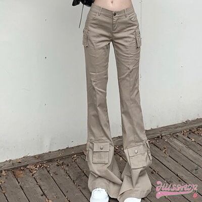 2024夏 韓国パンツ モップパンツ ワイドレッグ フレア ハイウエスト 脚長効果 美脚効果 細見え 春 ベージュ 茶色 カジュアル ストリート 韓国ファッション レディース お出かけ