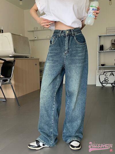 パンツ デニム ジーンズ ワイド ストレート ハイウエスト 脚長効果 美脚効果 細見え 春 カジュアル 韓国ファッション レディース お出かけ