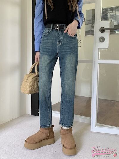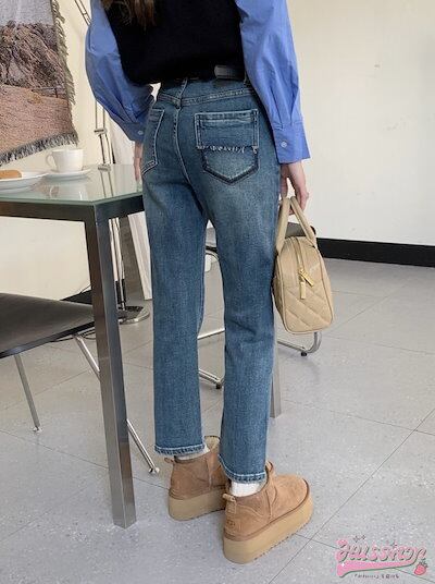パンツ デニム ジーンズ ワイド ストレート ハイウエスト 脚長効果 美脚効果 細見え ウォッシュ加工 春 カジュアル 韓国ファッション レディース お出かけ