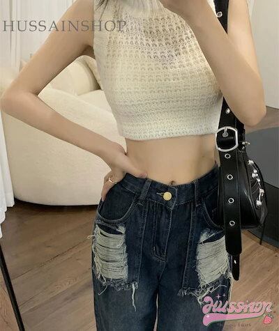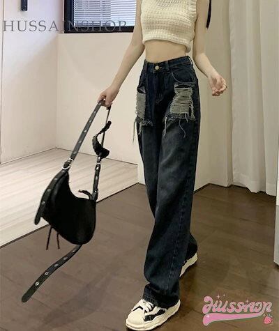 2024 春夏 usedライクなこなれた雰囲気 ポケット ハイウエスト ジーンズ ボトムス レッグ デニムパンツ スタイルアップ 脚長 加工カジュアル きれいめ★1