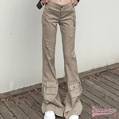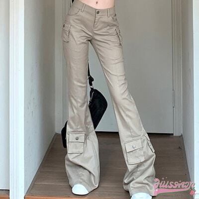 2024夏 韓国パンツ モップパンツ ワイドレッグ フレア ハイウエスト 脚長効果 美脚効果 細見え 春 ベージュ 茶色 カジュアル ストリート 韓国ファッション レディース お出かけ