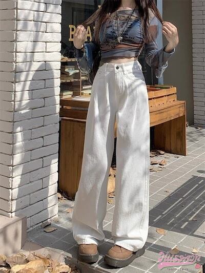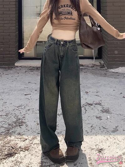 2024春夏パンツ デニム ジーンズ ワイド ストレート ハイウエスト 脚長効果 美脚効果 細見え ウォッシュ加工 春 白 茶色 カジュアル 韓国ファッション レディース お出かけ