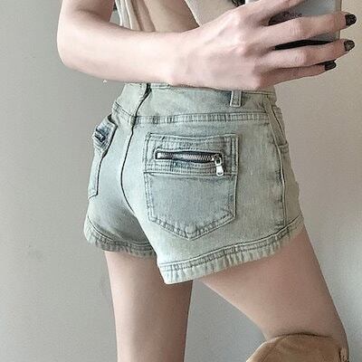 2024春夏パンツ デニム ジーンズ ショート丈 ジップ チャック ハイウエスト 脚長効果 美脚効果 細見え カジュアル かわいい おしゃれ 春 水色 ライトブルー 韓国ファッション レディース お出