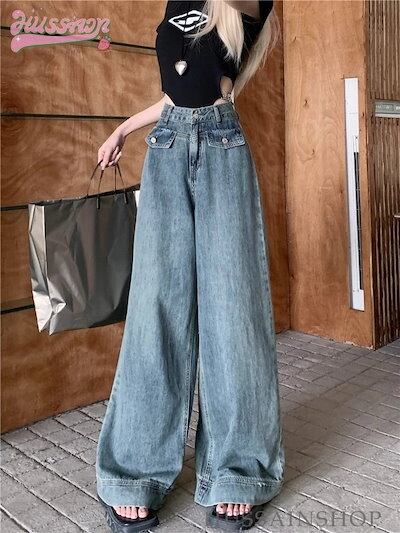 2024 春夏 ボトムスジーンズ デニム ハイウエスト 脚長効果 レッグ ファッション 足長効果 デニム ルーズ カジュアル スタイルアップ 脚長 美脚 クール かっこいい