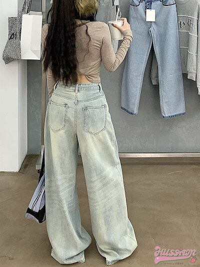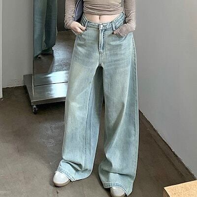 パンツ デニム ジーンズ ワイド ストレート ハイウエスト 脚長効果 美脚効果 細見え 春 カジュアル 韓国ファッション レディース お出かけ
