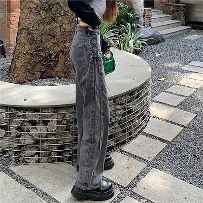 2024春夏 デニムパンツ ボトムス ゆったり カジュアルシルエット レッグロングパンツ 学生 韓国ファッション系