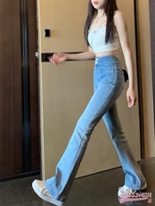 パンツ デニム ジーンズ スキニー ワイドレッグ ハイウエスト 脚長効果 美脚効果 細見え 春 カジュアル 韓国ファッション レディース お出かけ