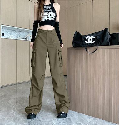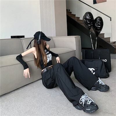 2024春夏 ダボっと可愛い ボトムス カーゴパンツ ロングパンツ ルーズ パンツ ボトム ズボン ルーズ メンズライク トレンド シンプル カジュアル ファッションズボン ブラック ダボかわ