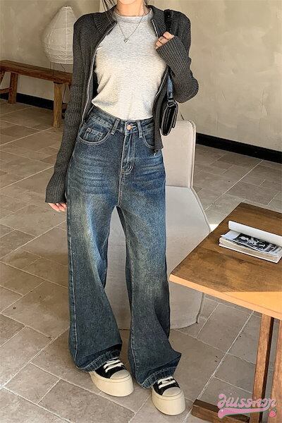 2024 春夏パンツ デニム ジーンズ ワイド ストレート ハイウエスト 脚長効果 美脚効果 細見え ウォッシュ加工 春 カジュアル 韓国ファッション レディース お出かけ