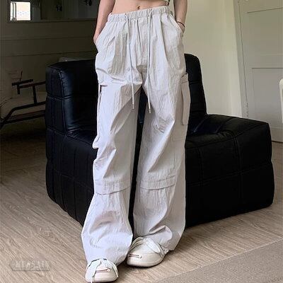 2024 春夏 ボトムス ドロスト ドローストリング ズボン ウエスト調節 カーゴパンツ ルーズ カジュアル系 ゆったり 美脚 脚長 スタイルアップ