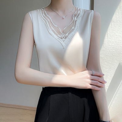 上品 夏 キャミソール レディース 高級感 ノースリーブ Tシャツ セクシー レースVネック 着痩せ アイスシルクトップス 百掛け アンダーウェア 冷感 キャミソール インナー 大きいサイズ