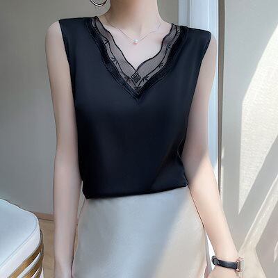 上品 夏 キャミソール レディース 高級感 ノースリーブ Tシャツ セクシー レースVネック 着痩せ アイスシルクトップス 百掛け アンダーウェア 冷感 キャミソール インナー 大きいサイズ