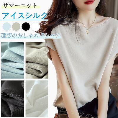 2024夏 新作 tシャツ レディース アイスシルク ニット半袖 韓国ファッション 百掛け 半袖トップス 冷感 通勤 カジュアル20代30代40代ドルマンスリーブシャツ