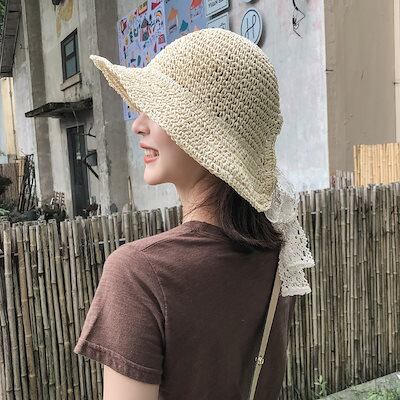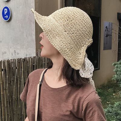 キャップ特集 麦わら帽子 レディース 日系 可愛い レース バケットハット紫外線対策つば広 帽子 海辺の旅行 UVカット 帽子 小顔効果 日よけ帽子 麦わら帽子韓国ファッション