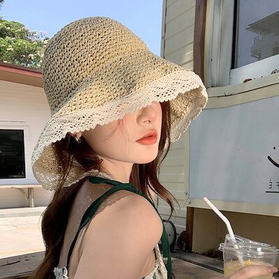キャップ特集 日系 レース麦わら帽子 レディース 紫外線対策つば広 帽子 可愛い UVカットバケットハット 韓国ファッション 小顔効果 旅行日よけ帽子 麦わら帽子