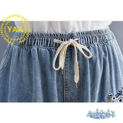 ワイドパンツ レディース 刺繍 20代30代40代 ゆったりパンツ ロングパンツ デニムパンツ ガウチョパンツ ボトムス 春夏 2024