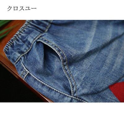 森ガール デニムパンツ レディース 大きいサイズ 菱形 ダメージデニム ウエストゴム ジーンズ 刺繍 美脚