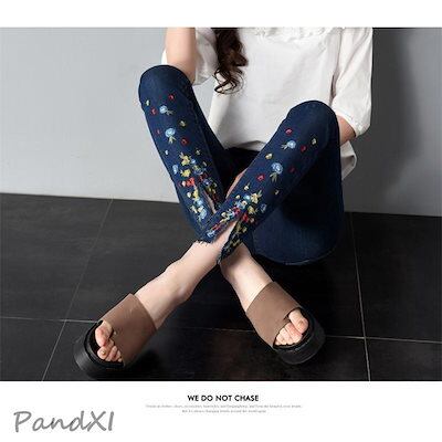 デニムパンツ レディース スキニー ジーンズ ズボン ボトムス ファッション ハイウエスト ストレッチ 大きいサイズ 着痩せ 春夏 仕事 刺繍 大人