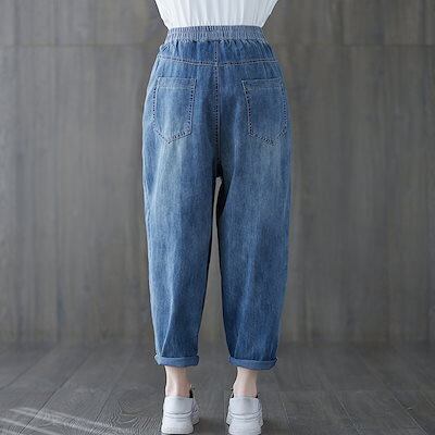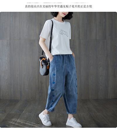 大きいサイズ テーパードパンツ にぴったり薄ジーンズハート刺繍ハーレムパンツウエストゴムパンツ