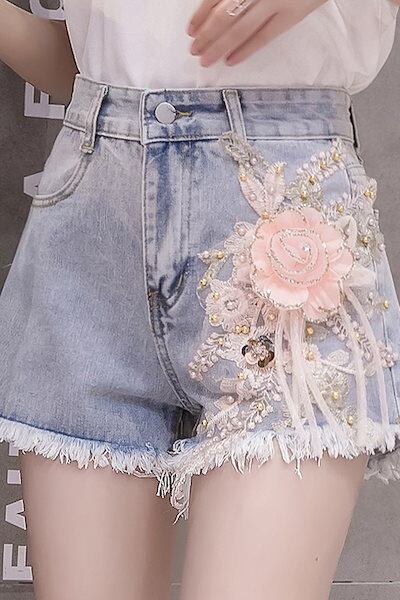 デニムパンツ女性夏ぬるい2022新韓 版エスニック刺繍立体花毛縁ハイウエストワイドパンツ
