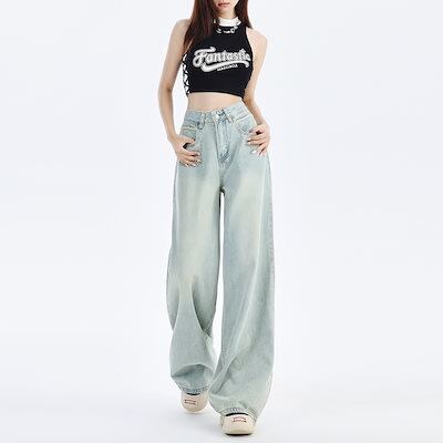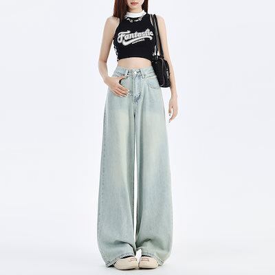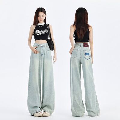 1208 #2024新水色のゆるいワイドジーンズは腰が高くて痩せている刺繍デザインのペンダント感がある
