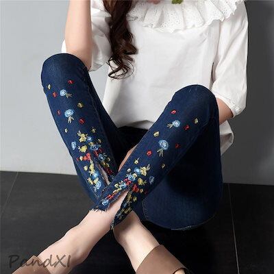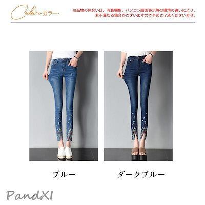 デニムパンツ レディース スキニー ジーンズ ズボン ボトムス ファッション ハイウエスト ストレッチ 大きいサイズ 着痩せ 春夏 仕事 刺繍 大人