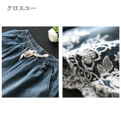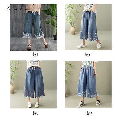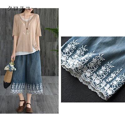ガウチョパンツ レディース デニムパンツ 大きいサイズ 森ガール ダメージデニム 刺繍 涼しい1