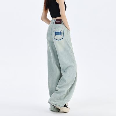1208 #2024新水色のゆるいワイドジーンズは腰が高くて痩せている刺繍デザインのペンダント感がある