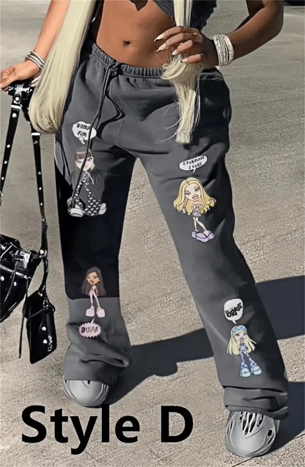 Hlj-女性用レタープリントスウェットパンツ、ドローストリングパンツ、ボトム、カジュアルポケット、バギーストリートウェアトラックスーツ、スウェットパンツ、y2k ボトム ワイドレッグ バギーパンツ T240831173514_08