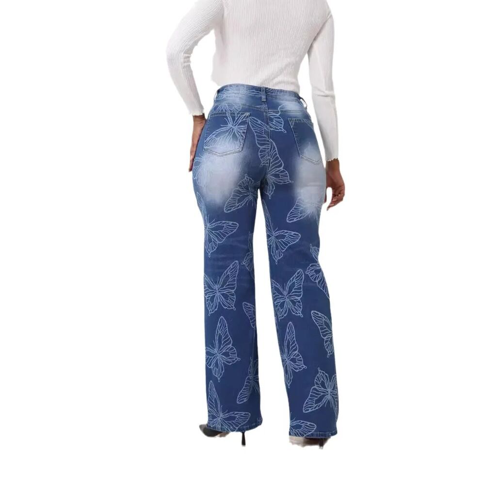 バタフライパターンのレディースジーンズ,ルーズフィット,レジャー,韓国スタイル,シック,トレンディ,y2k,クールなストリートウェア,人気のイン,2024 ボトム ワイドレッグ バギーパンツ T240831173545_01