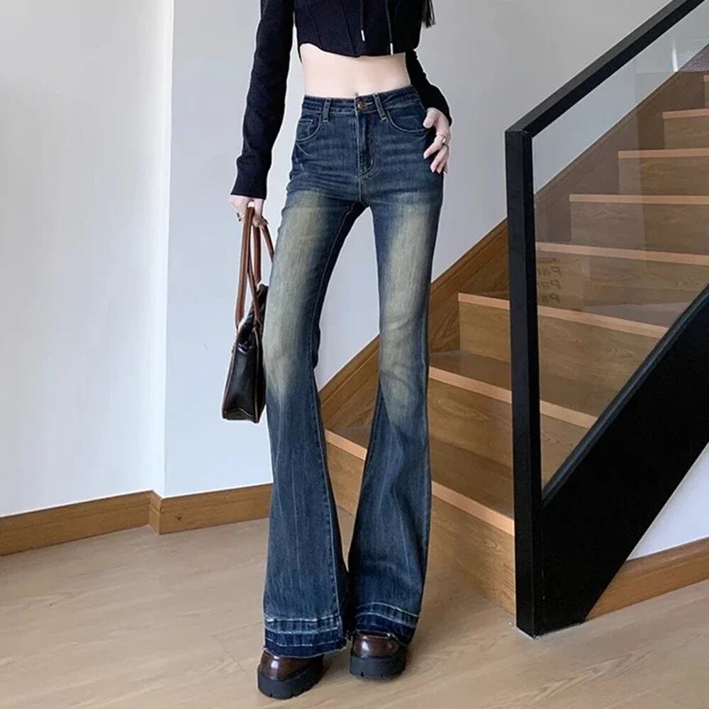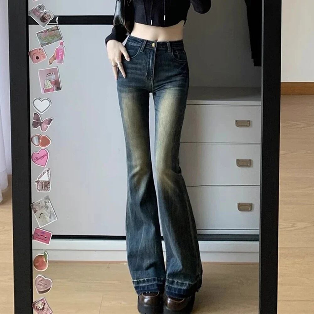 レディースヴィンテージハイウエストジーンズ,ベルバギージーンズ,レディースファッションフレアパンツ,トレンディなブルーのデニムパンツ,y2k 2000s ボトム ワイドレッグ バギーパンツ T240831173609_01