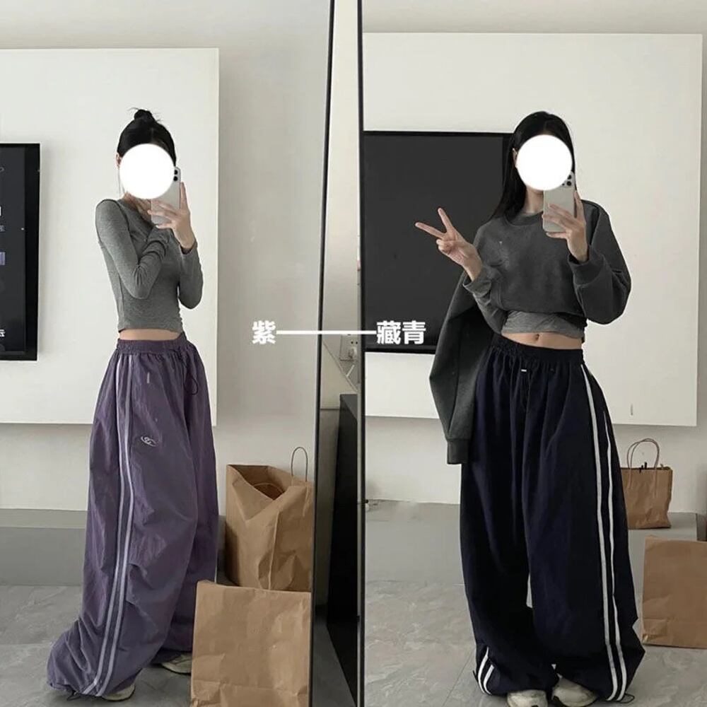 女性用ルーズカーゴパンツ,カジュアル,無地,伸縮性ウエスト,ワイドレッグ,ポケット付きパンツ,ストリートウェア,y2k ボトム ワイドレッグ バギーパンツ T240831222335_02