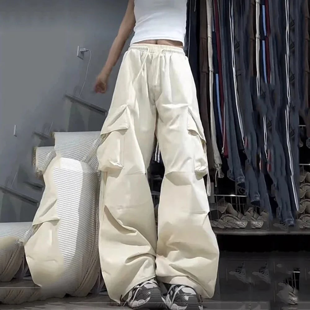 女性用ハイウエストバギースウェットパンツ、y2kカーゴパンツ、女性用ストリートウェア、ヒップホップパンツ、大きなポケット、カジュアルなローウエストドローストリングパンツ ボトム ワイドレッグ バギーパンツ T240831222520_01