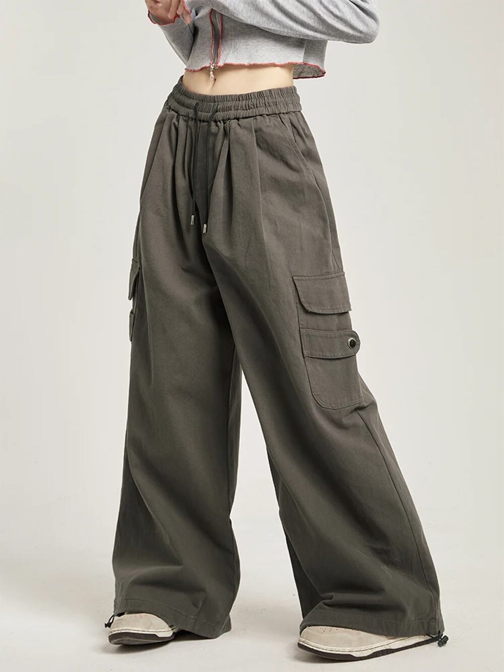 広州-女性の日本のワイドレッグカーゴパンツ、特大のカーゴパンツ、女性のルーズカジュアルストリートウェア、ヒップホップポケット、秋 ボトム ワイドレッグ バギーパンツ T240831222528_01