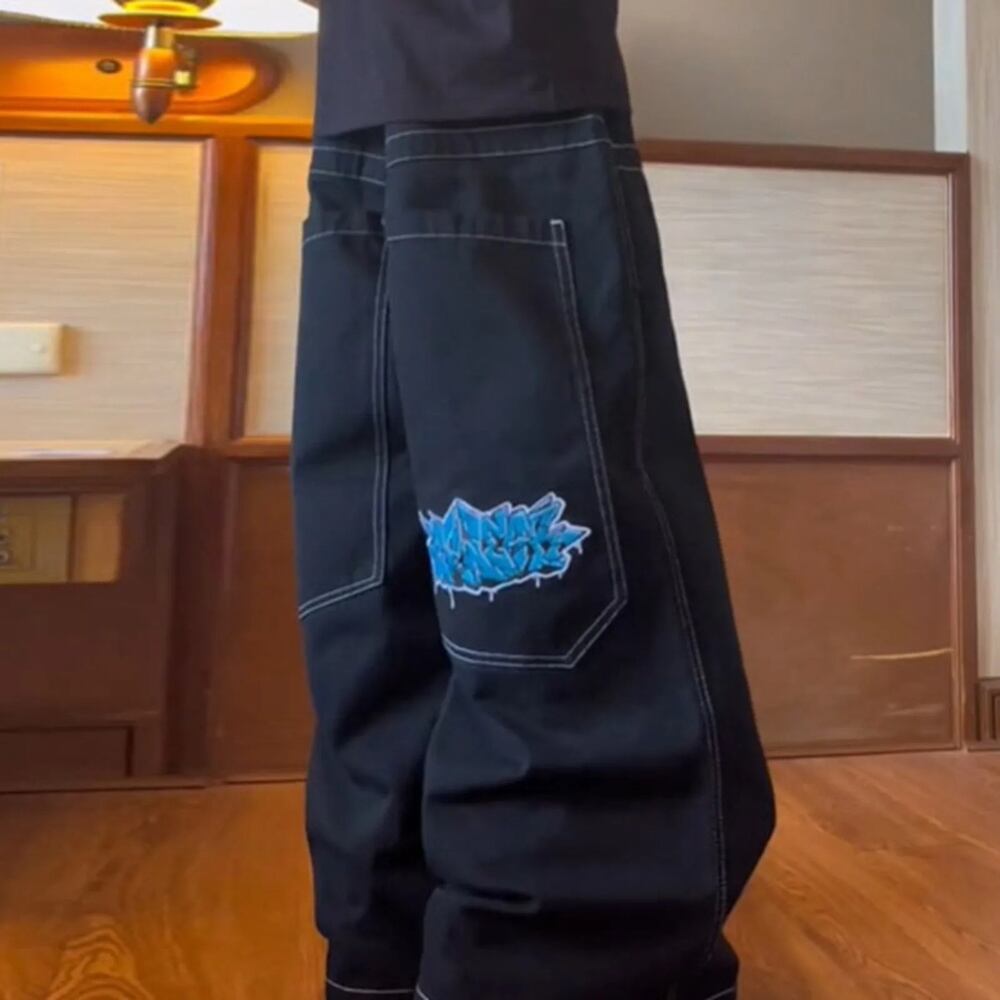 女性用ハイウエストバギージーンズ,原宿,パンク,ヒップホップ,ハイウエスト,カーゴパンツ,ストリートウェア,ヴィンテージ,トレンディ,y2k ボトム ワイドレッグ バギーパンツ T240831222708_01