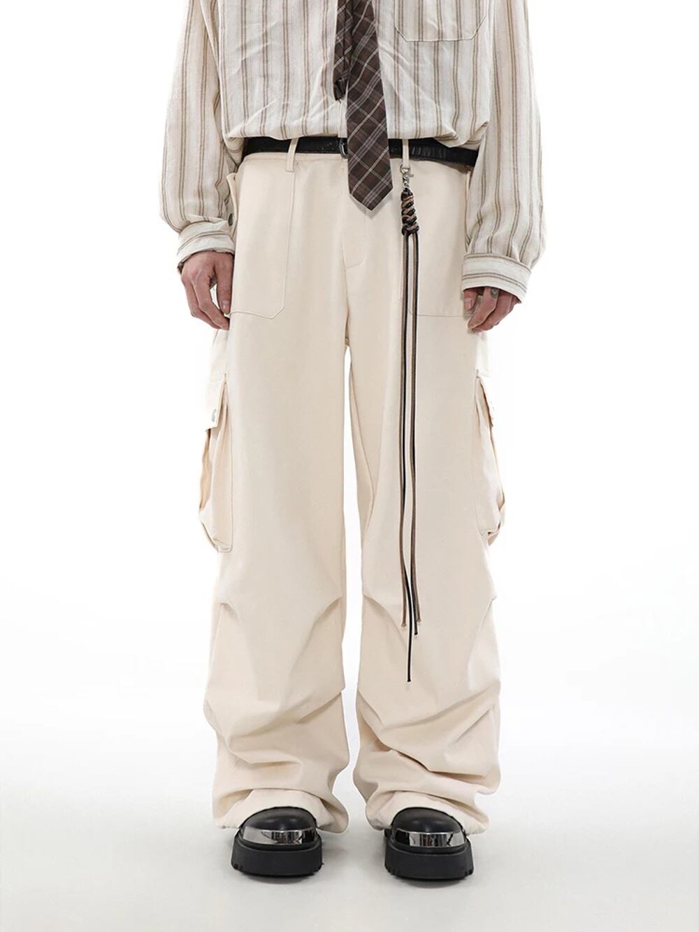 Houzhou-メンズワイドカーゴパンツ、バギーパンツ、特大、ルーズ、カジュアル、ヒップホップ、ポケット、男性ストリートウェア、春 ボトム ワイドレッグ バギーパンツ T240831222725_01