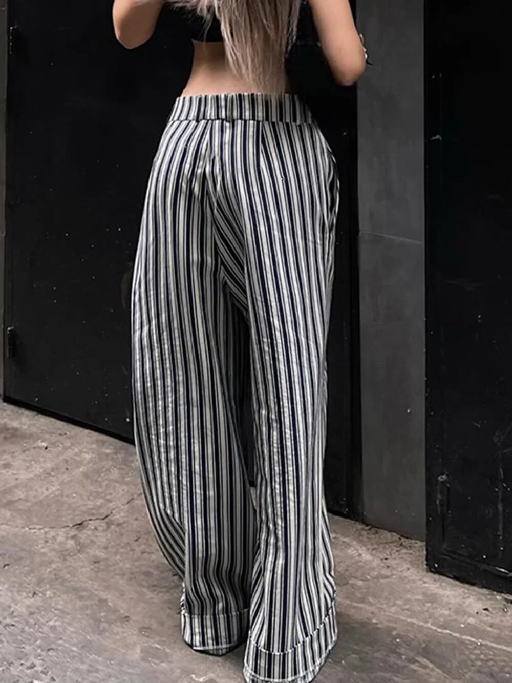 Iamsure-女性のカジュアルなストライプのワイドレッグパンツ、ルーズなベーシックなミッドウエストカーゴパンツ、レディースストリートウェア、春と秋のファッション、2024 ボトム ワイドレッグ バギーパンツ T240831222814_01