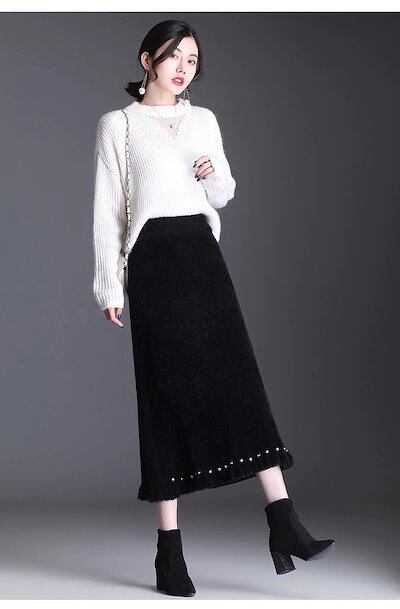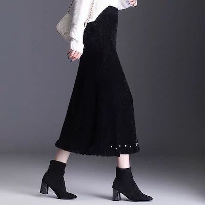 マキシスカート 脚魅せミニスカート マーメイドスカート 夕イトスカ一ト裾飾り ゴムウエスト ミディアム丈 Aライン 厚手 レディース ロングスカート ゆったり