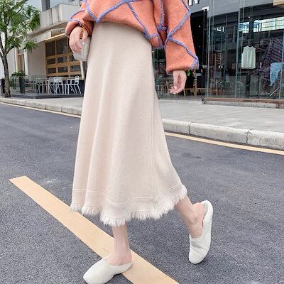 脚魅せミニスカート マーメイドスカート 夕イトスカ一ト2022新作 ハイウエストセミロング 厚手 ニット ゆったり 毛糸 おしゃれ スカート