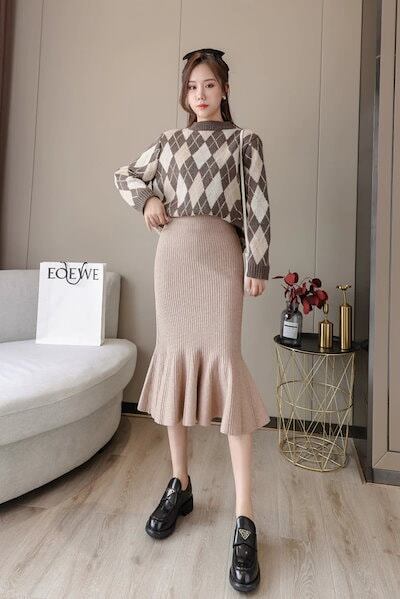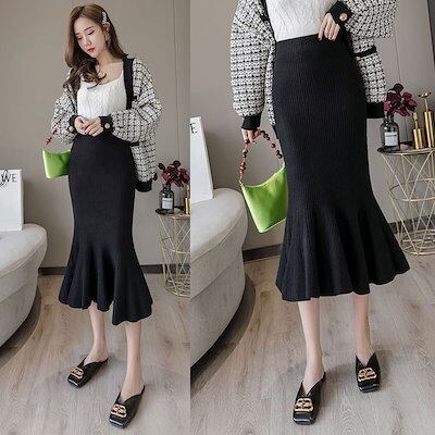 マキシスカート 脚魅せミニスカート マーメイドスカート 夕イトスカ一トスカート ニットスカート フィッシュテールスカート レディース スリム見え