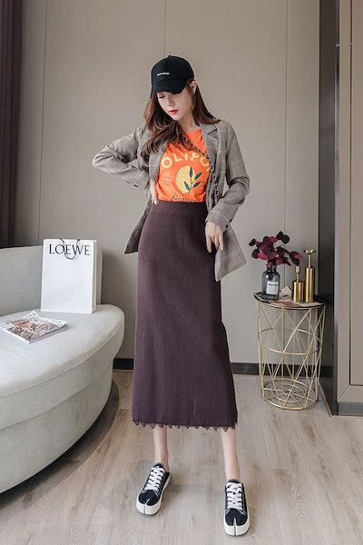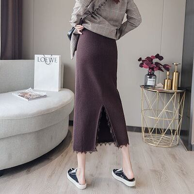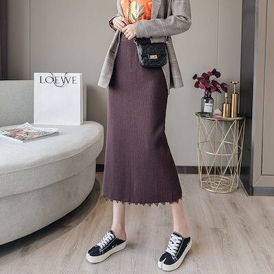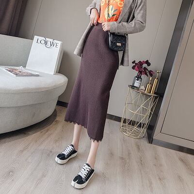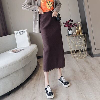 マキシスカート 脚魅せミニスカート マーメイドスカート 夕イトスカ一トスカート レディース スリット入り ニットスカート