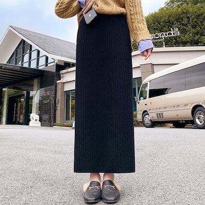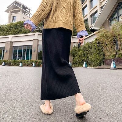 マキシスカート 脚魅せミニスカート マーメイドスカート 夕イトスカ一トスカート ニットスカート レディース 厚手 スリット入り 毛織スカート